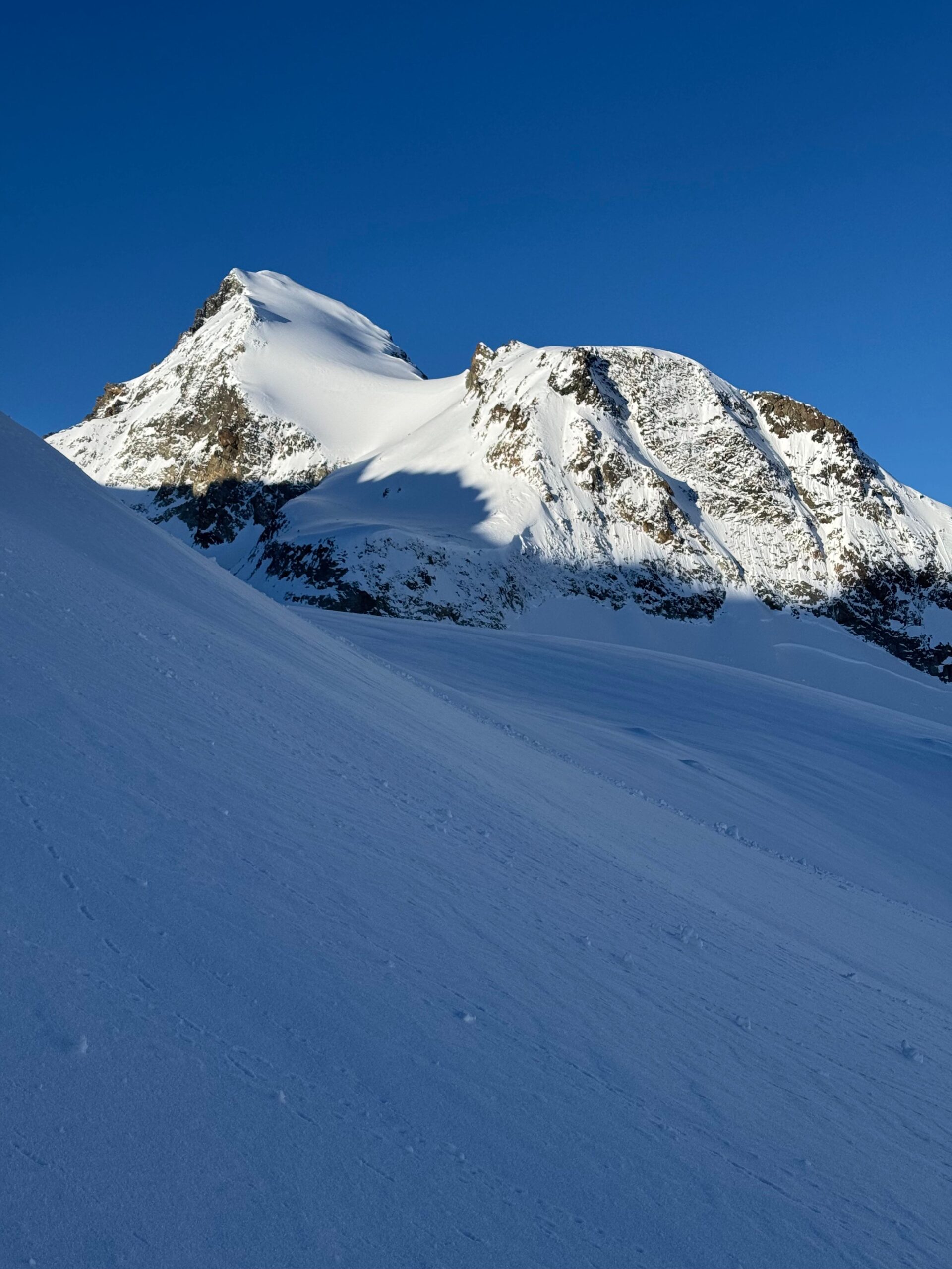 Perché à 2000 m d’altitude, Arolla, c’est le charme du bout du monde. Une route qui s’arrête, un village discret, un accès rapide à la haute montagne. C’est l’un des plus beaux coins du Valais pour le ski de rando sur plusieurs jours.