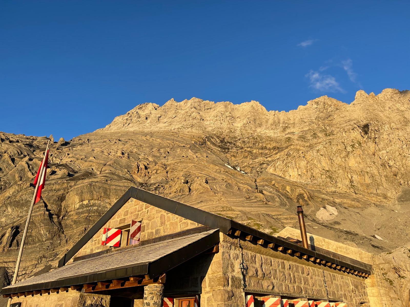 Le premier jour, nous rejoignons la cabane de Plan Névé après environ 2 heures de montée. Cette approche permet de prendre le temps de s’installer, de revoir le matériel et de se préparer sereinement à la course du lendemain. La cabane offre un cadre chaleureux et une ambiance montagnarde authentique, face aux sommets environnants.
