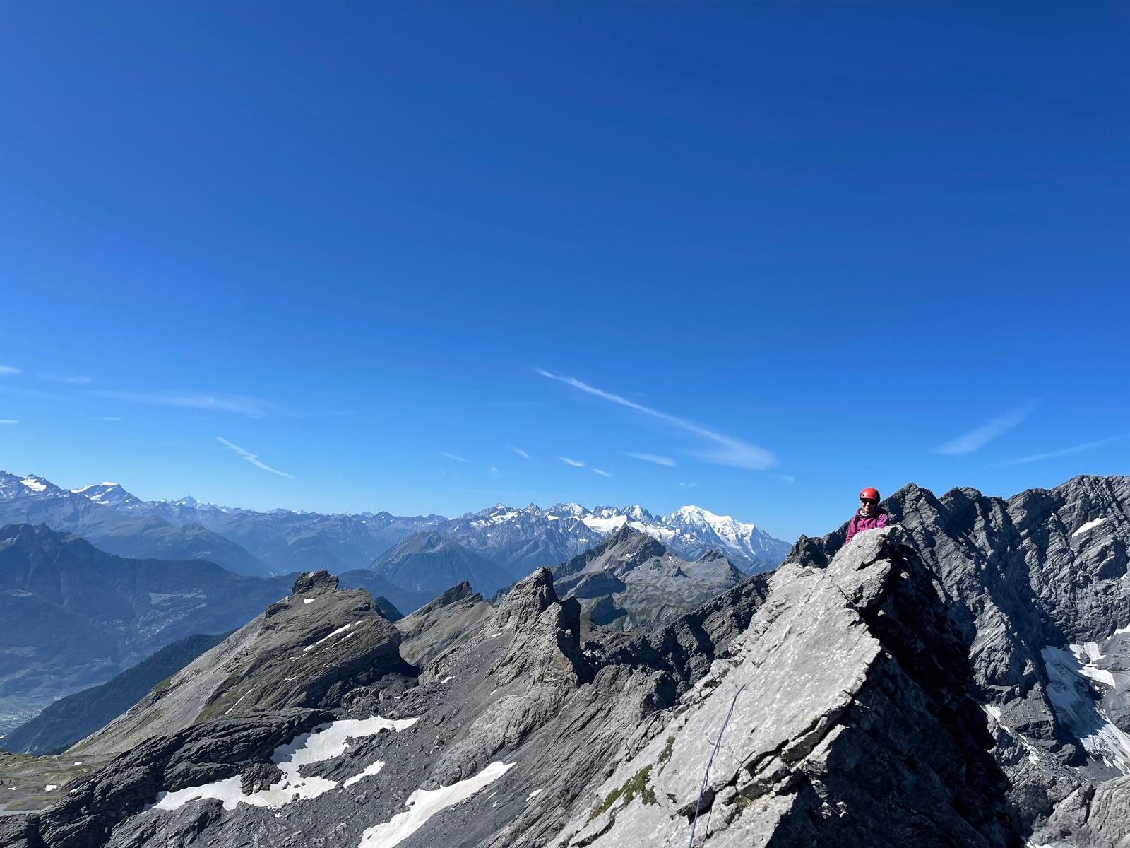 L’arête mène au sommet de la Tête à Pierre Grept (2904 m). Depuis le sommet, la vue s’ouvre sur les glaciers valaisans et les reliefs des Alpes vaudoises. Peu fréquentée, cette course séduit par son ambiance alpine et son engagement mesuré mais soutenu.